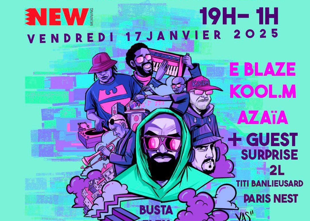 Après avoir enflammé la Scène du New Morning avec Kohndo, Kyo Itachi, E.Blaze & The Selenites Band en Septembre 2023, le New Morning et l’équipe de Beat Tape Session vous proposent une soirée axée sur le beatmaking, cette fois ci elle sera 100 % Hip Hop. La Beat Tape Session Vol.IV met à l’honneur Busta Flex ! MC Légendaire considéré comme l’un des meilleurs kickeurs et freestyleurs de l’Hexagone, il est l’une des figures de proue de l’âge d’or du rap français. Busta Flex sera en concert exceptionnel pour cette occasion.En renfort, les beatmakers E.Blaze, Kool M et Azaïa vous réservent leurs plus belles productions avec des guests de taille comme Titi Banlieusard, 2L et Paris Nest, et d’autres surprises toujours accompagnés du trompettiste Sérigne Diagne et du claviériste Cosmiqueur, avec la participation de DJ Ness Afro pour un set avec de nombreux tracks Hip Hop Français et US inédits.